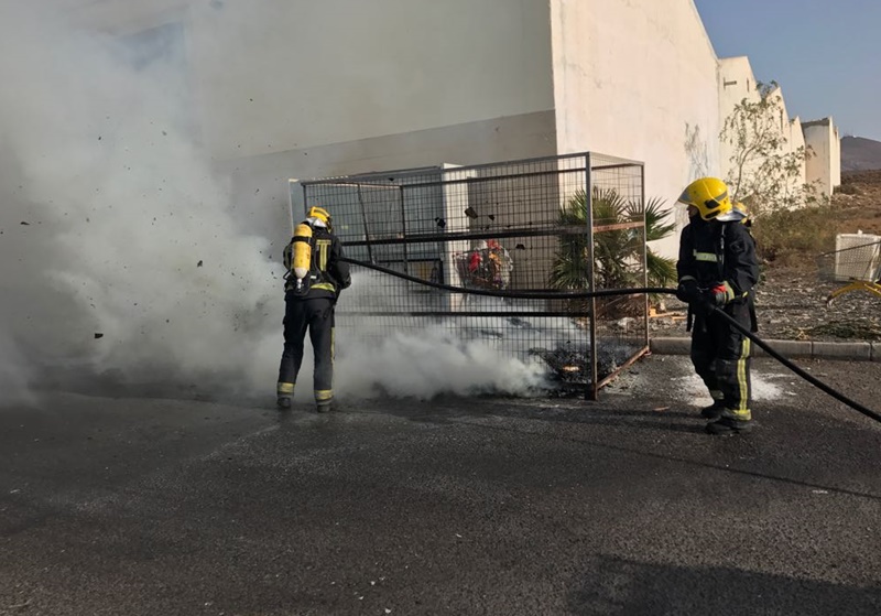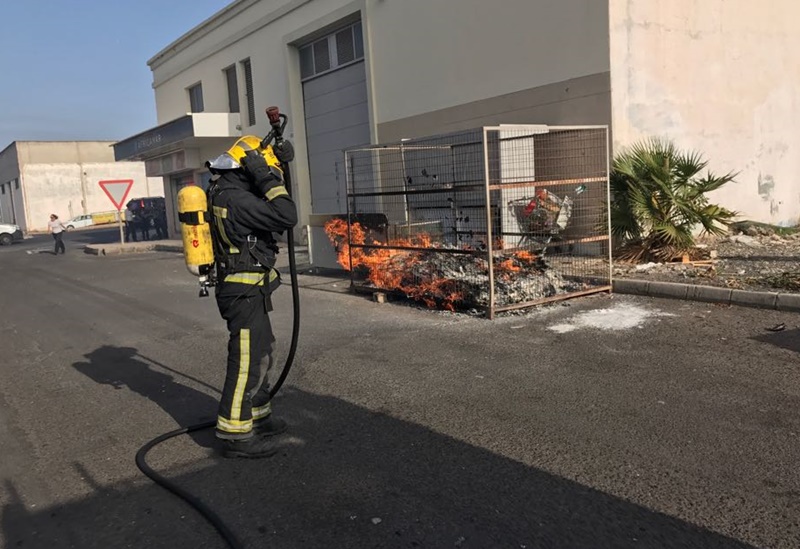 Bomberos del Consorcio de Seguridad y Emergencias extinguieron este viernes por la mañana un incendio declarado en un contenedor metálico para cartones en la zona industrial de Playa Honda.