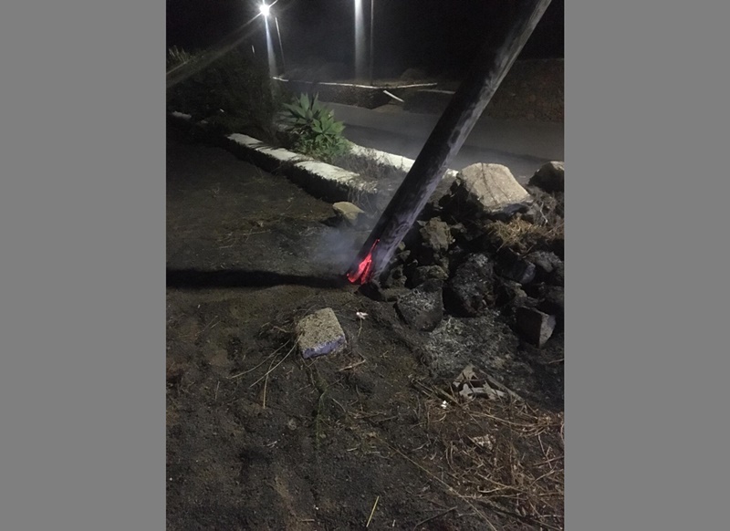 Un poste de tendido eléctrico se incendiaba en la noche de San Juan en Los Valles, Teguise.