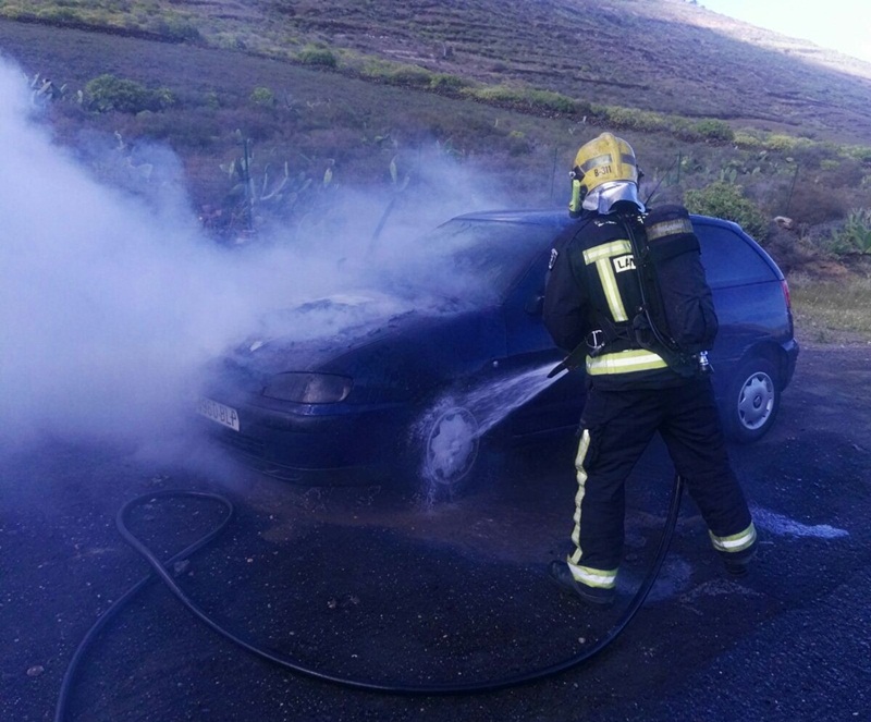 Hacia las 16.00 los bomberos, alertados por el CECOES, acudían a la zona, comprobando que se trataba de un vehículo que circulaba por la carretera LZ-208 (cuesta Teujillo), y que había afectado al motor y parte del interior del habitáculo.