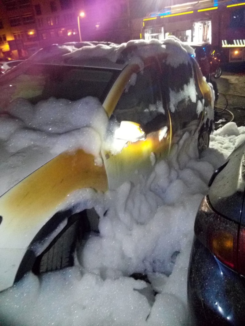 Se procedió a apagar el fuego con agua y a inundar el vehículo con espuma. Se abrió el capó y el maletero para extinguirlo en su totalidad.
