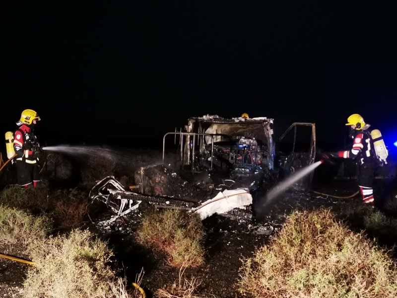 Los Bomberos sofocaban en la noche del domingo el incendio producido en una autocaravana ubicada pasa la rotonda de Arrieta en dirección Ye.