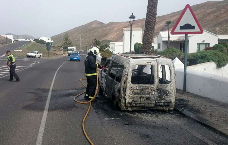 Fue sobre las 14:30 horas cuando el conductor detectó que estaba saliendo fuego de la parte de abajo del vehículo, ante lo que paró de inmediato. Aunque sacó una caja de herramientas, poco pudo hacer, más que ver como las llamas consumían la furgoneta, que acabó calcinada. "Tan sólo se ha salvado el motor", han señalado a Lancelot Digital desde Protección Civil de Yaiza.