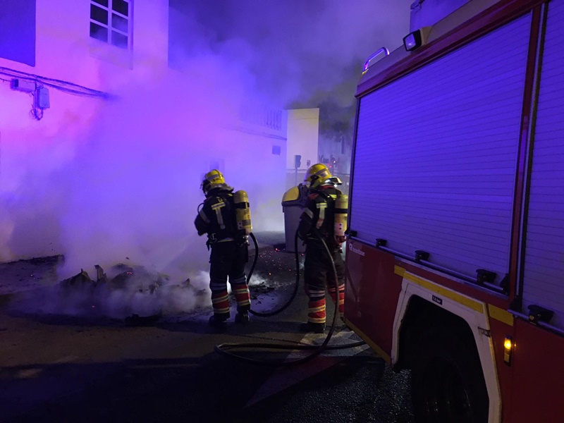 Los Bomberos se encargaron de sofocar el incendio de dos contenedores en la calle Avenida Eugenio Rijo Rocha de Santa Coloma.