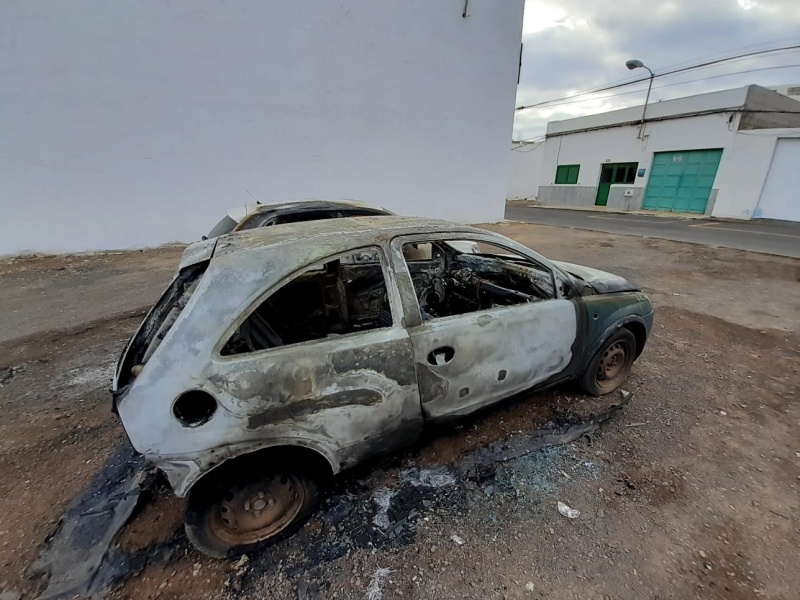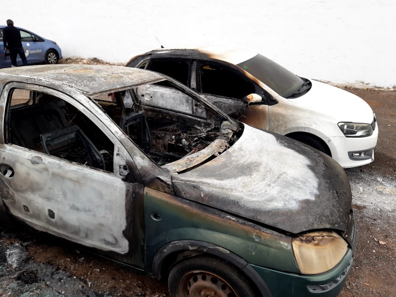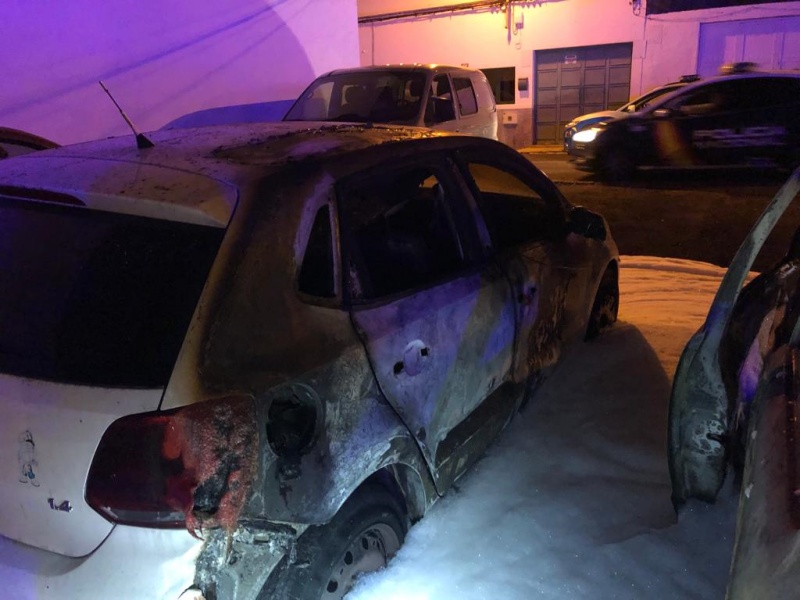 Los Bomberos acudían en la madrugada del martes a sofocar un incendio en la calle Filipinas de Arrecife, que afectaba a dos vehículos en gran medida y a un tercero en su parte frontal.