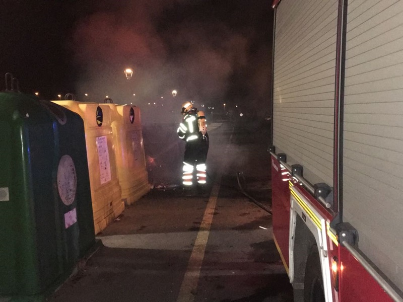 Bomberos del Consorcio de Seguridad y Emergencias han tenido que extinguir en la madrugada de este domingo dos incendios que calcinaron otros tantos contenedores en Arrecife y Tahíche.