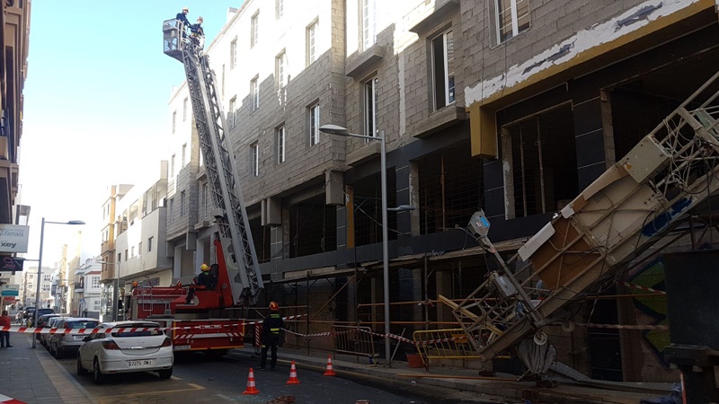 Cae un andamio con dos obreros dentro en Arrecife
