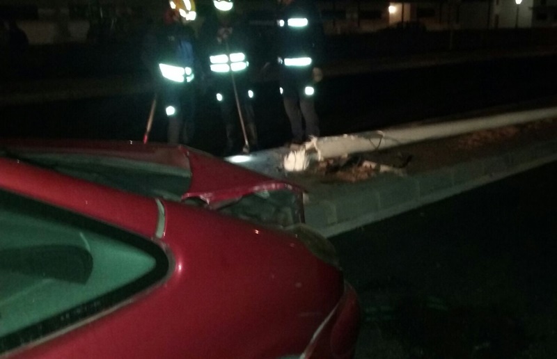 Fue sobre las 20:40 horas cuando los bomberos recibieron una alerta en la que se les comunicaba que una farola estaba a punto de caer en la Avenida Faro de Pechiguera después de que un vehículo hubiera impactado con ella.