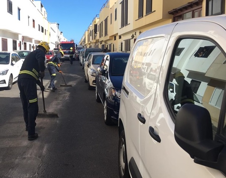 Según informa el Consorcio de Seguridad y Emergencias de Lanzarote, los bomberos actuaron en el lugar retirando el aceite que quedó en la calzada a causa del impacto.