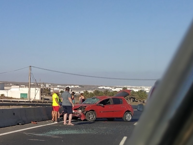 La carretera LZ-2, en el municipio de Tías, era el escenario este martes por la tarde de un nuevo accidente de tráfico en el que un vehículo impactó violentamente contra la mediana mientras circulaba en dirección hacia Arrecife.