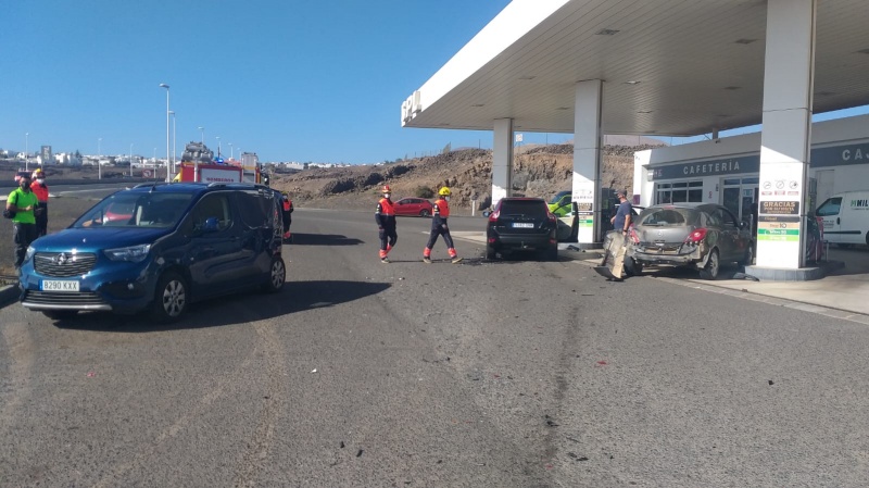 Dos vehículos han sufrido un accidente al chocar en el entorno de la gasolinera SPL de Tías alrededor de las 13:00 horas de este miércoles.