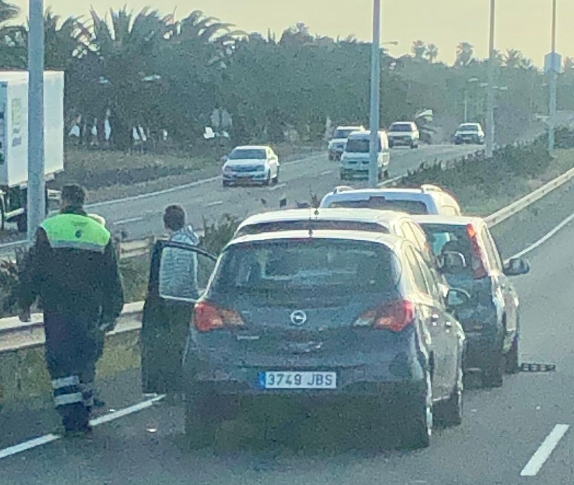 A primera hora de esta mañana de lunes un choque en la LZ-2, carretera de Arrecife al aeropuerto, provocó grandes retenciones, sobre todo para quienes desde el sur trataban de entrar en la capital.