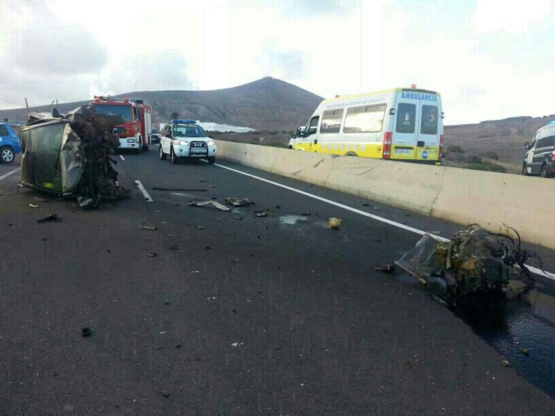 Brutal choque entre dos vehículos el que se producía esta tarde en la carretera de San Bartolomé con dirección a Arrecife. Cinco jóvenes entre 17 y 21 años se han visto implicados pero sólo uno de ellos ha resultado herido menos grave y el resto, sólo con heridas leves.