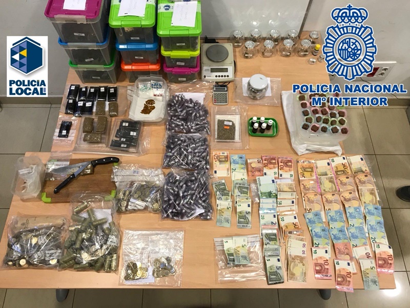 Con la preceptiva orden judicial, los agentes policiales llevaron a cabo un registro, en el que fueron intervenidos 4 kilos de hachís, 1,1 kilos de marihuana y 280 gramos de polen de hachís, además de 3.100 euros en efectivo.