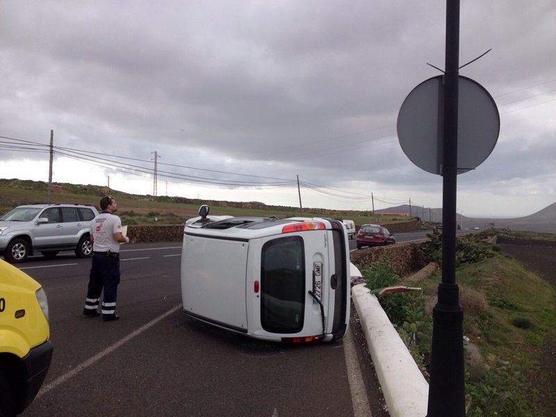 Tan sólo 20 minutos antes, a las 11 horas, otro coche volcaba en la LZ-2, a la entrada de Tías. En este caso, el SUC asistió a un hombre de 27 años con un traumatismo en hombro de carácter leve. También acudieron bomberos, Policía Local y Guardia Civil.