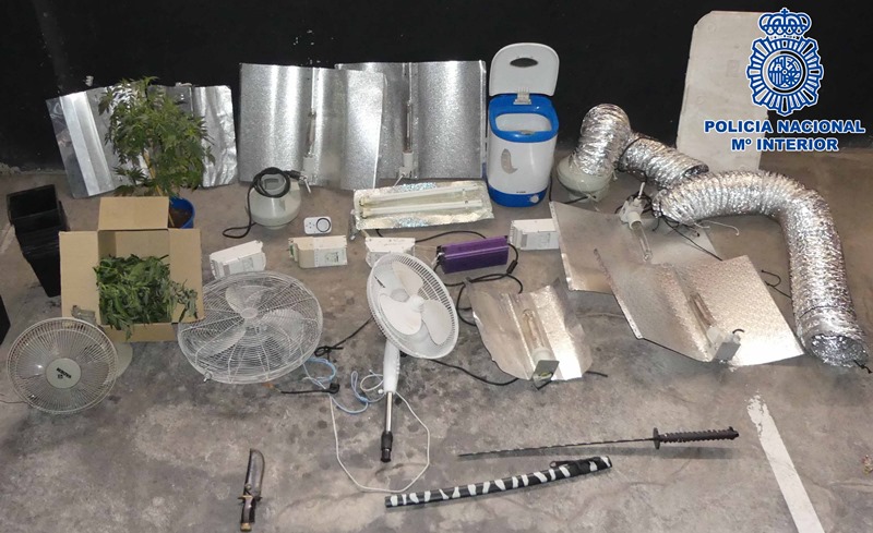 Tras conseguir los indicios suficientes y con la preceptiva orden judicial, los investigadores policiales llevaron a cabo un registro en el citado domicilio, en el que fue localizado un invernadero con 86 plantas de marihuana, además de una catana y un machete.