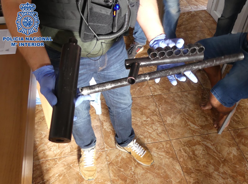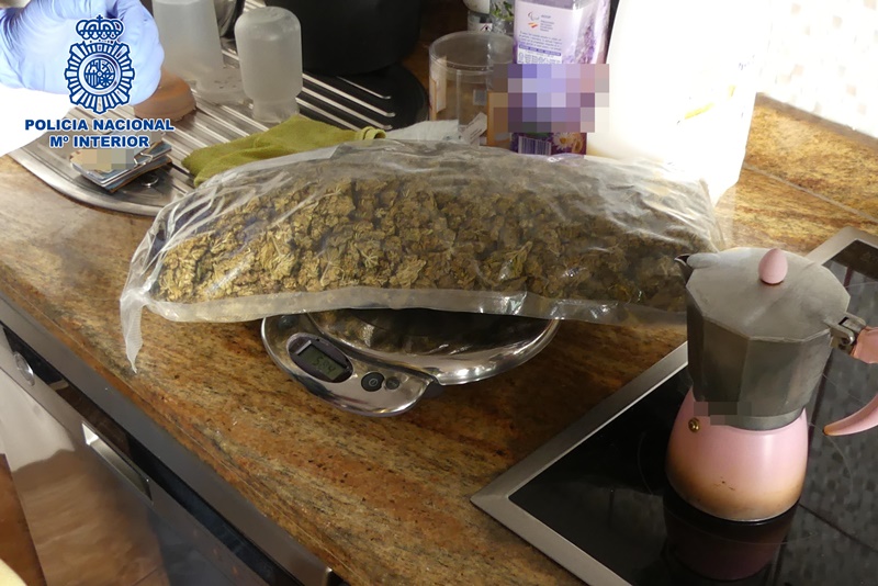Con la preceptiva orden judicial, los agentes llevaron a cabo varios registros en diferentes localizaciones donde fueron intervenidas varias armas de aire comprimido (carabina y subfusil), un arma prohibida de fabricación casera, munición, una báscula de precisión, 12.8 gramos de cocaína, 2 kilogramos de hachís, 11 kilogramos de marihuana y 1.949 euros. Además, también fueron incautados 8 kilogramos de galletas presuntamente cocinadas con sustancias estupefacientes.