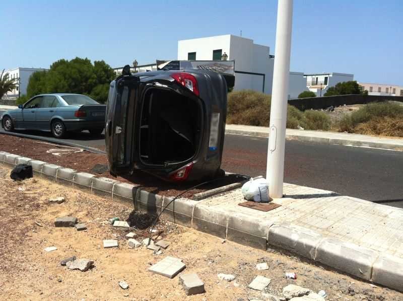 Por otra parte, un coche, también de alquiler, se salió de la vía y volcó en la Avenida Faro de Pechiguera. Este accidente se produjo el domingo a las 14:30 horas. La persona que iba al volante no requirió asistencia médica. Policía Local de Yaiza, Guardia Civil y Protección Civil de Yaiza atendieron las dos emergencias.