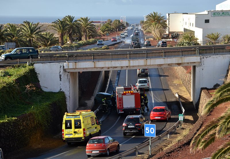El primero de los accidentes tenía lugar en la calle Matagorda, donde un todoterreno volcaba. La conductora, de 28 años, presentaba una cervicalgia de carácter leve y fue trasladada en ambulancia del SUC al hospital, según confirman desde el Centro Coordinador de Seguridad y Emergencias del Gobierno de Canarias (Cecoes) 1-1-2.