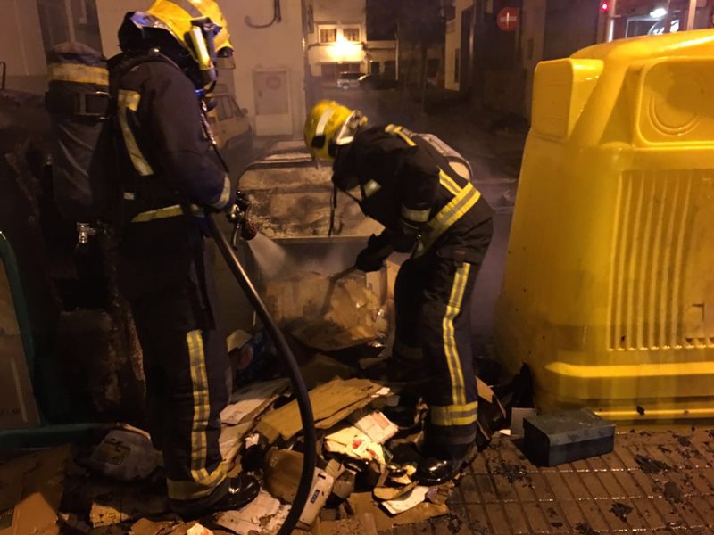 De los dos contenedores, el destinado a vidrio quedó inservible al ser de plástico mientras que el destinado a papel, al estar fabricado de metal, puede seguir siendo utilizado.