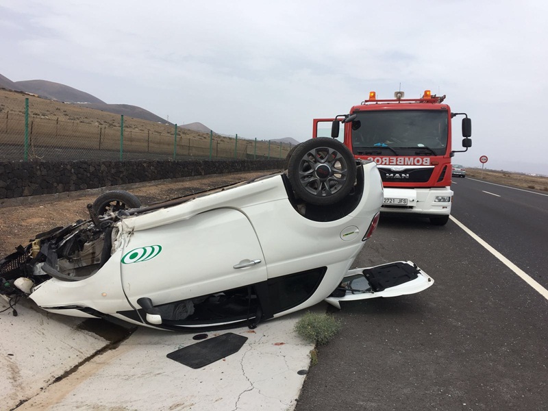 Fue sobre las 15.55 horas horas cuando tuvo lugar el accidente, desplazándose hasta el lugar de los hechos bomberos del Consorcio de Seguridad y Emergencias, al pensarse que una de las personas estaba atrapada en el interior del coche. También acudieron una ambulancia del SUC, la Guardia Civil y la Policía Local de Yaiza.