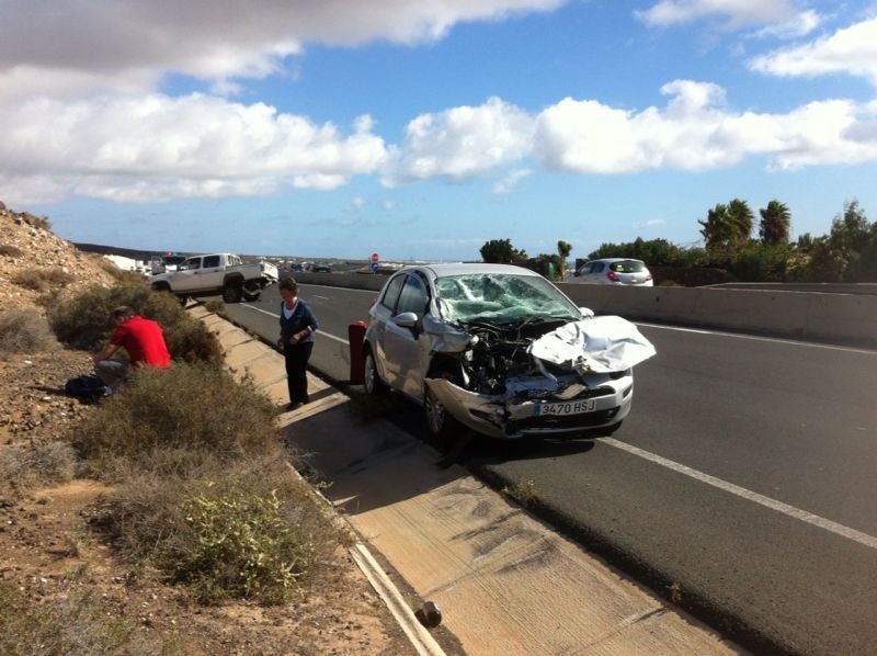 Dos personas han resultado heridas de carácter leve en un choque entre dos vehículos en Tías, a la altura de la machacadora.