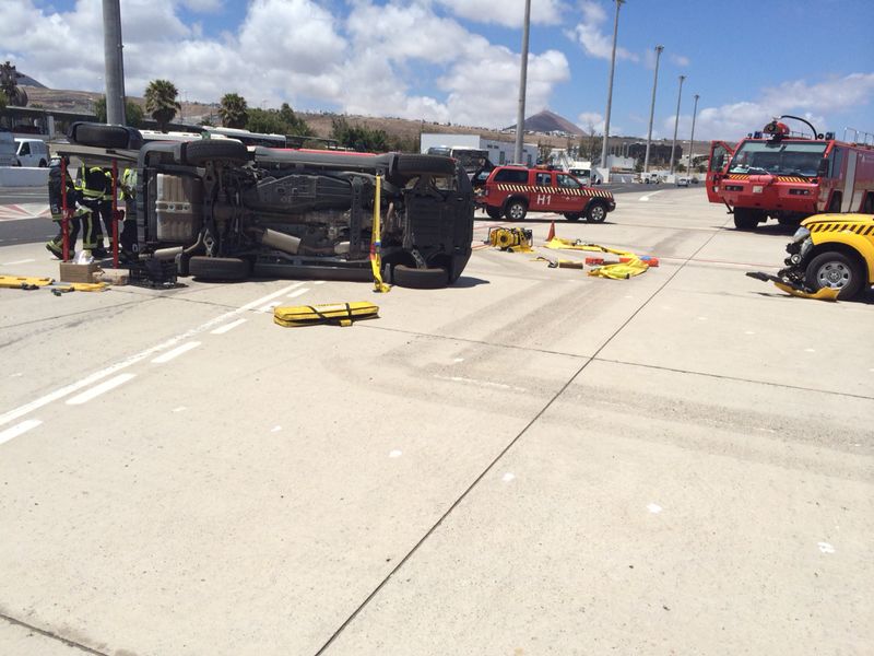 Dos vehículos del aeropuerto de Lanzarote han chocado en plena pista del aeródromo. Se trata de un coche de seguridad y de un coche guía, uno de los cuales ha quedado volcado, aunque desde AENA aseguran que la operatividad del aeródromo no se ha visto afectada.