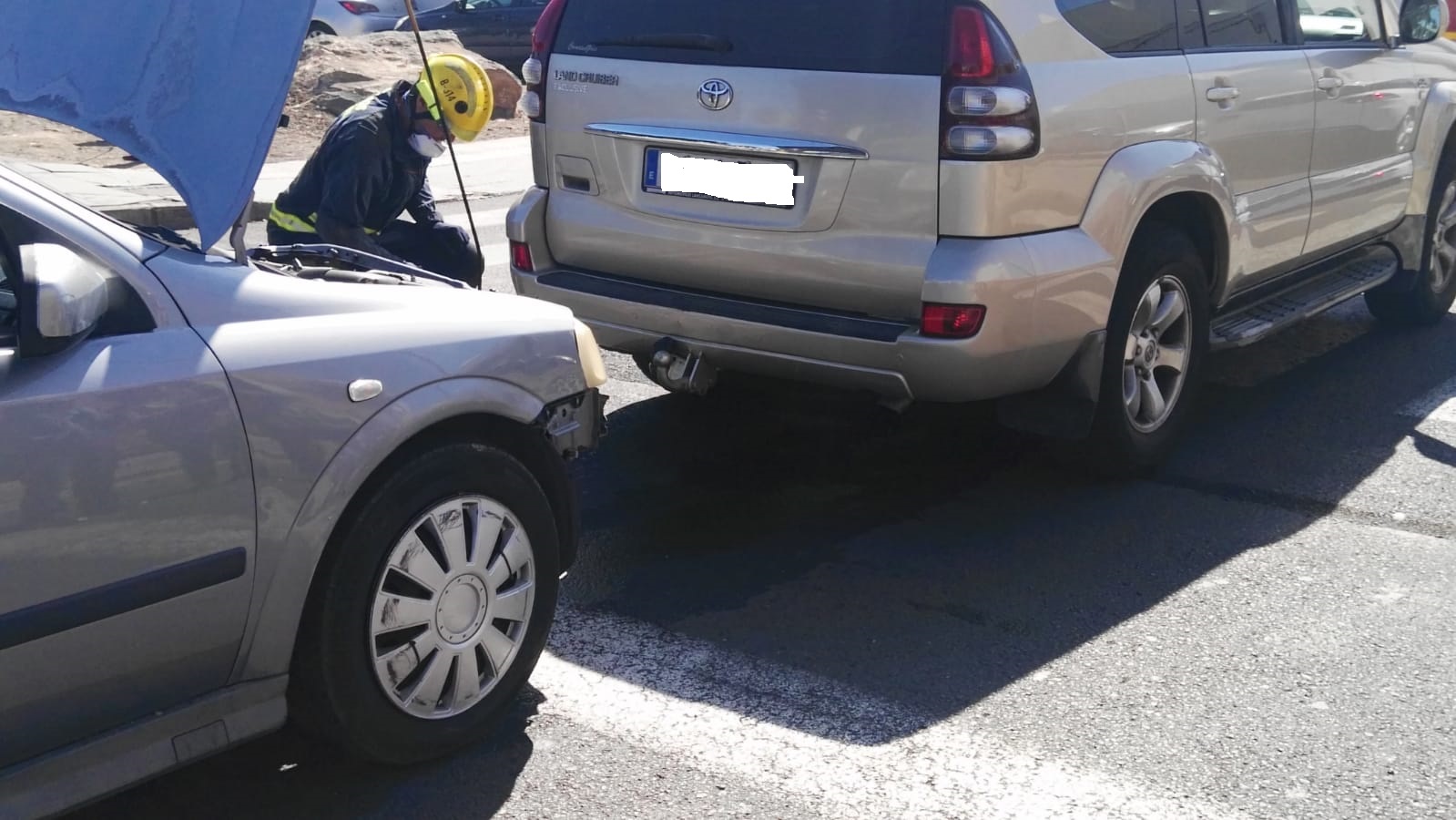 El Consorcio de Emergencias, alertado por la Policía Local de Arrecife, ha acudido al lugar para separar los coches implicados en el accidente, que habían quedado enganchados.