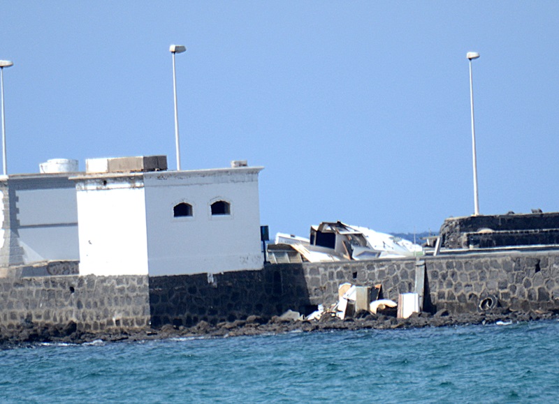 El barco que encalló en las rocas frente al Ayuntamiento de Arrecife ya ha sido sacado del agua pos su propietarios, aunque ha quedado totalmente destrozado. El embate de las olas ha hecho imposible recuperar el ‘Alborada 3’, que durante semanas permaneció encallado cerca del Castillo de San Gabriel y ahora yace desguazado en plena marina de Arrecife.