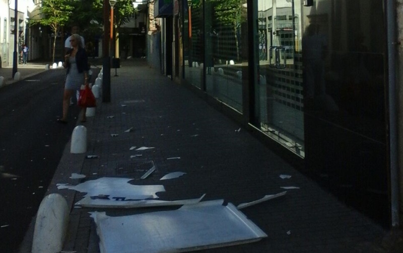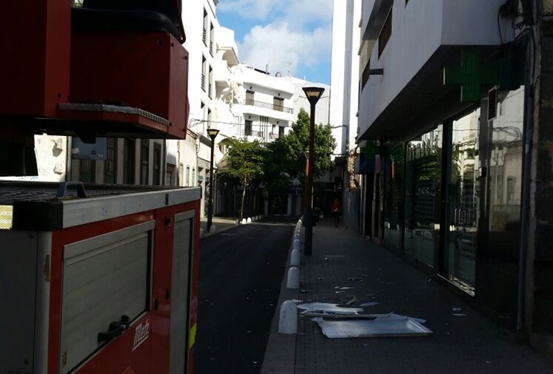 Al suelo se ha caído este martes el cartel del PSOE instalado en la antigua sede del partido en Arrecife, ubicada en la calle Canalejas. Por suerte no ha habido que lamentar daños personales, aunque según testigos de los hechos el letrero ha estado a punto de caerle a a una chica en la cabeza.