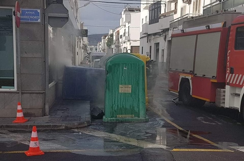 Los Bomberos del Consorcio de Seguridad y Emergencias del Cabildo de Lanzarote han sido alertados este domingo sobre las 15.40 horas del incendio de un nuevo contenedor de cartón en la calle La Niña, en el municipio de Arrecife.