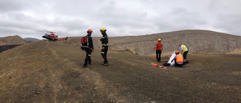 El suceso ocurría a las 19.51 horas, cuando los agentes del Parque Nacional de Timanfaya alertaban al Centro Coordinador de Emergencias y Seguridad de que una senderista había sufrido una caída y se encontraba herida en una zona de difícil acceso.