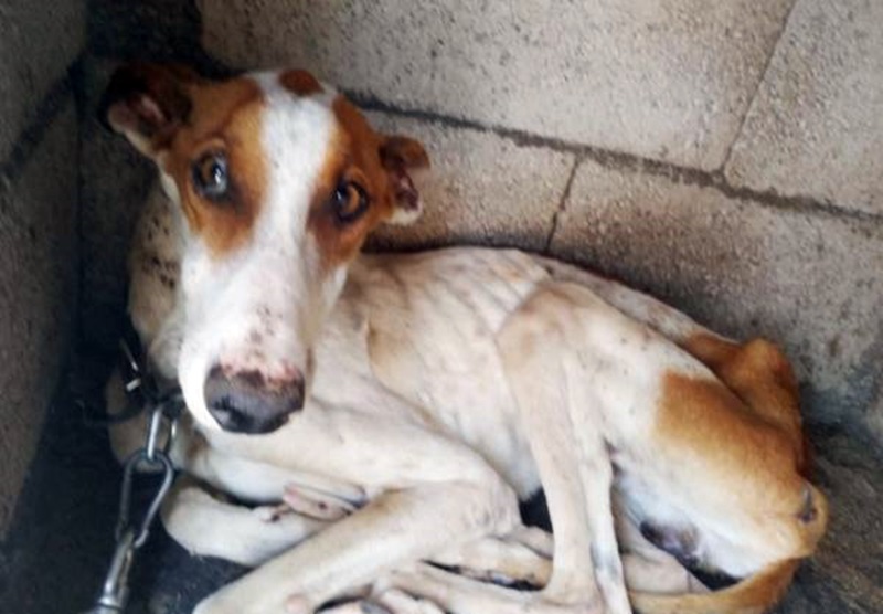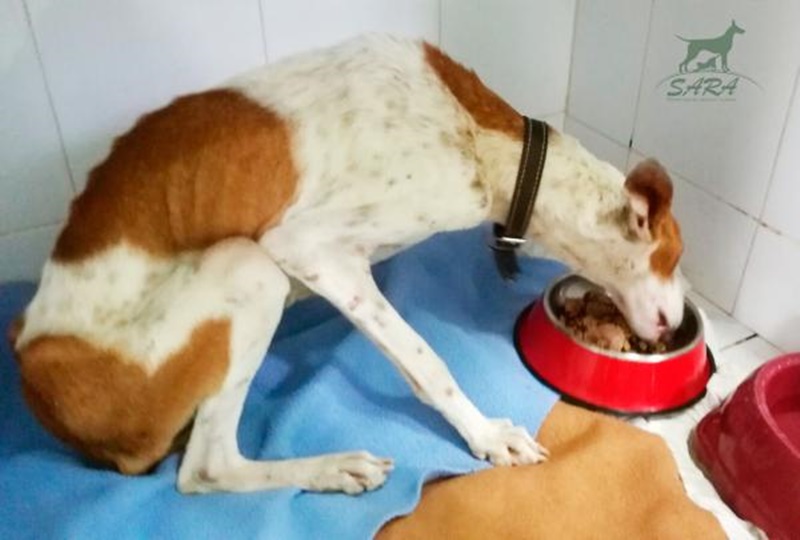 El animal fue llevado "de urgencia" a un veterinario para que fuera atendido en una primera inspección a las instalaciones por parte de la Policía Local de Tías, ya que "su vida corría peligro" debido "a su extrema delgadez". El perro, al que se le ha puesto el nombre de Tahiti, llegó este viernes a Sara aunque "con un hambre atroz y una tristeza que nos parte el alma", señalan desde la protectora.