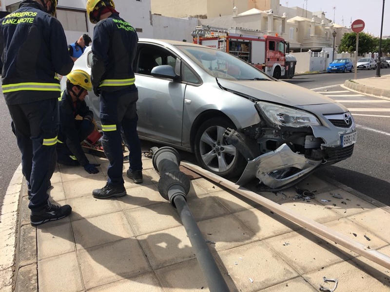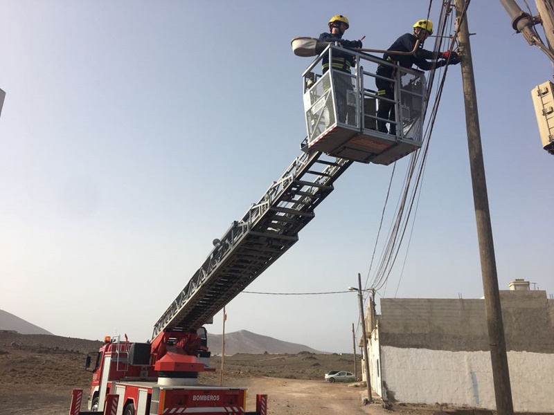 Hacias las 17:00 horas del miércoles, los Bomberos acudían a una llamada que advertía del peligro de caída de una farola en la Calle Sorondongo de San Francisco Javier, en Arrecife.