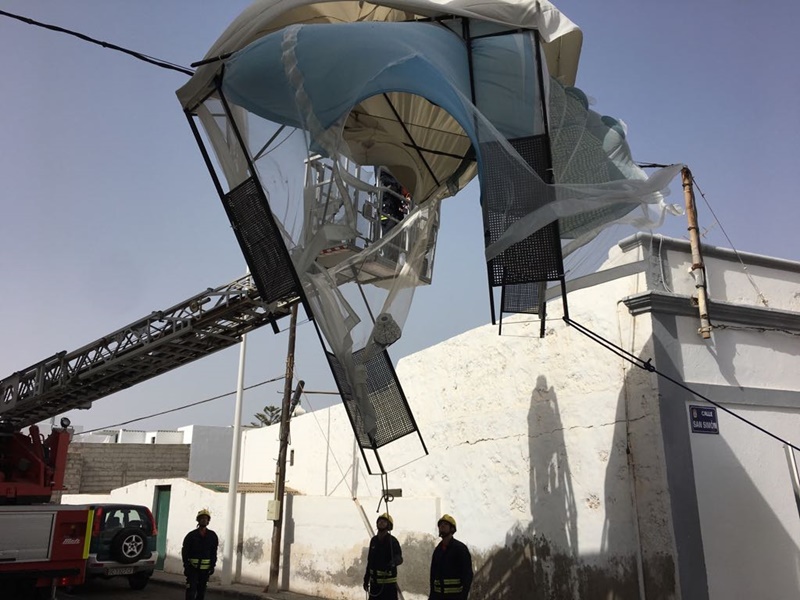 A lo largo de la tarde se fueron sucediendo los incidentes como la asistencia en una de las naves de Protección Civil en Tías cuya plancha superior, la correspondiente al techo, se encontraba suelta y corría peligro de caer a causa del viento.