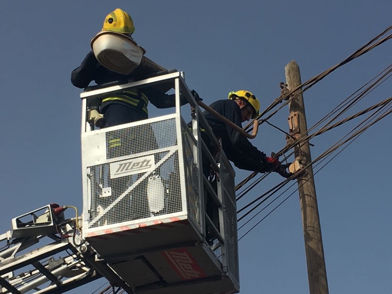 Los Bomberos también retiraron una farola de la que colgaba un cable. Se desconectó y se bajó el cable de la misma.