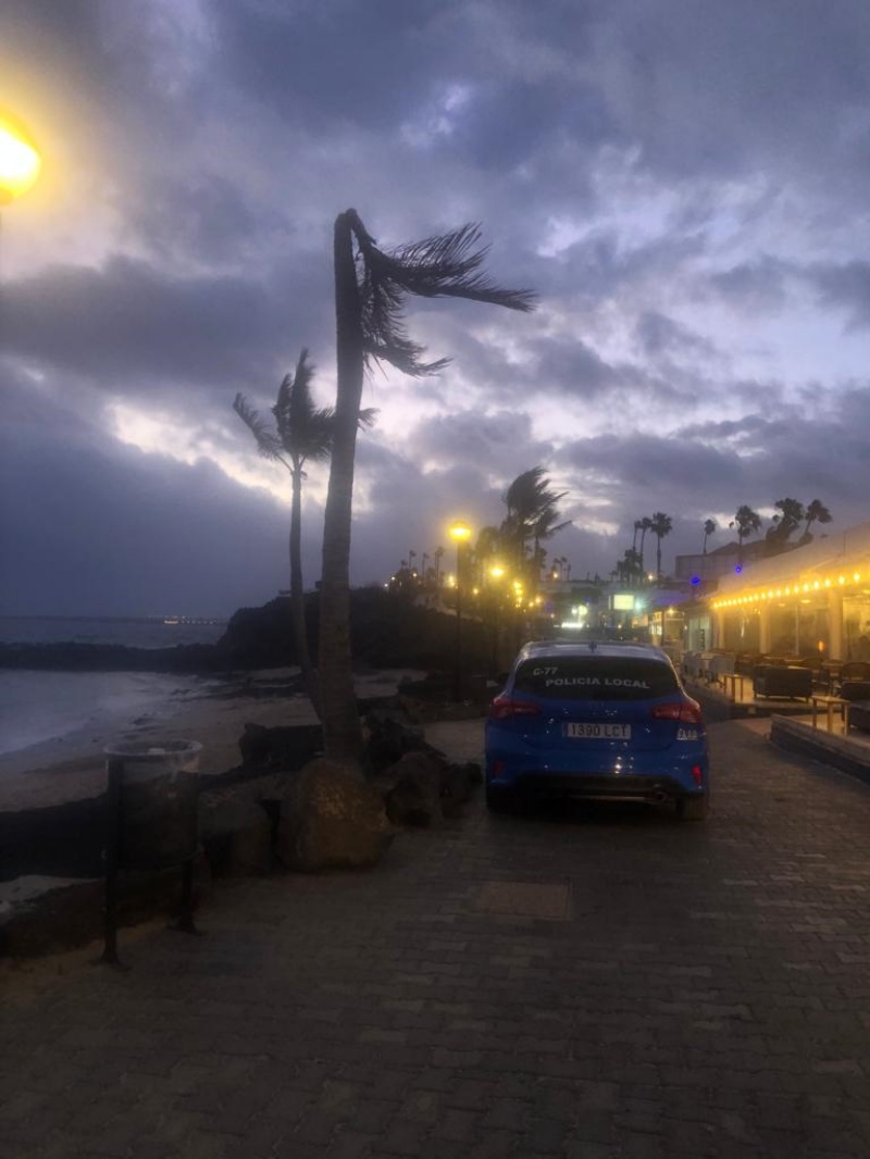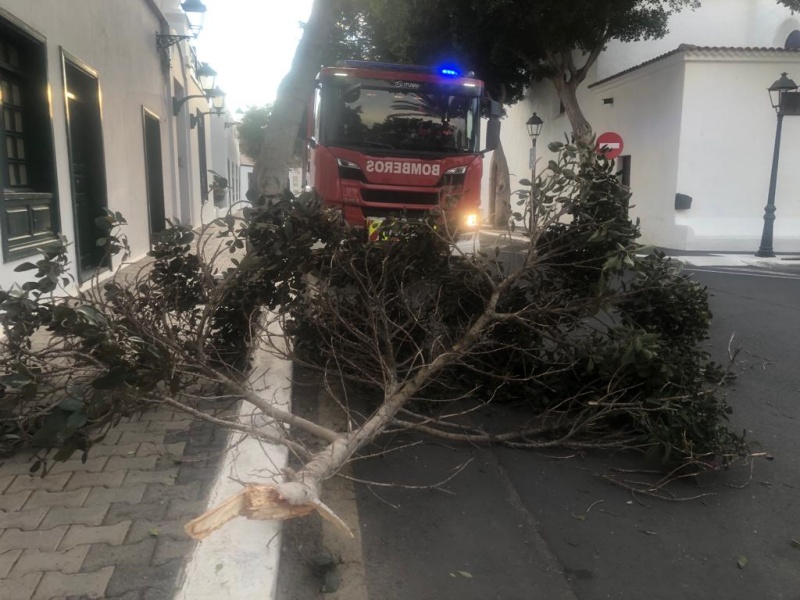 Los Bomberos estuvieron especialmente activos en la tarde noche del pasado lunes debido a los fuertes vientos que sufrió la isla. Hacia las ocho menos veinte atendieron la llamada de unos vecinos advirtiendo de la caída de una rama en la calzada, justo detrás de la Iglesia de Yaiza.