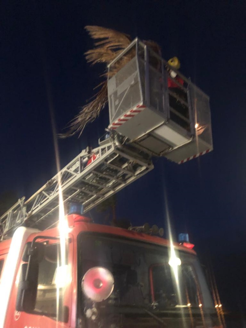 Sin salir del municipio sureño, acudieron a Playa Blanca donde, con ayuda de una escala, retiraron la copa de una palmera que colgaba con peligro de caer.