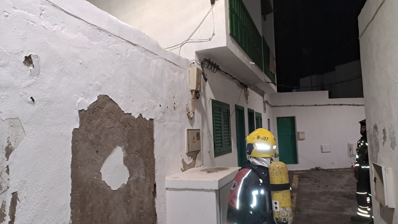Los bomberos del Consorcio de Seguridad y Emergencia también se desplazaron en la noche de este viernes hasta Famara para contener el fuego que se había producido en un cable en la calle Calado de Caleta de Famara.