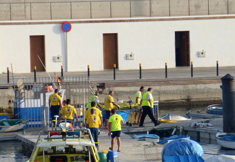 El cuerpo sin vida, un varón de unos 50 a 60 años de edad, según fuentes cercanas, fue trasladado al muelle de La Tiñosa, donde el juez procedió al levantamiento del cadáver.