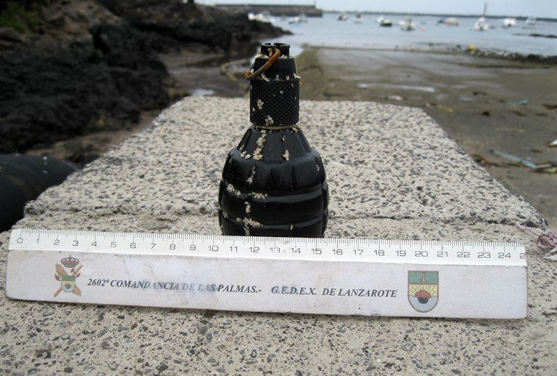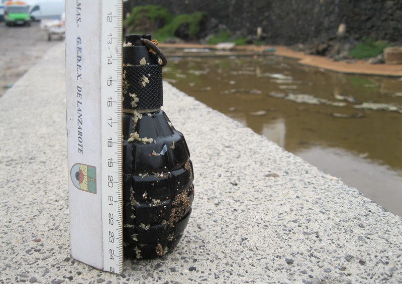 Una granada de mano sin desactivar fue hallada este domingo en la orilla del mar, en el muelle de Órzola, según han confirmado a Lancelot Digital desde la Guardia Civil.