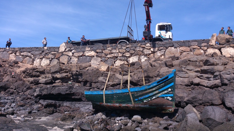 En los alrededores de la patera, que estaba varada en una zona rocosa con el motor roto, se han encontrado prendas de vestir pero por ahora no se ha localizado a ninguno de sus tripulantes. Tanto la Policía Local de Yaiza como la Guardia Civil participan en las labores de búsqueda. Protección Civil de Yaiza, con la ayuda de una grúa, retiró la embarcación de la costa.