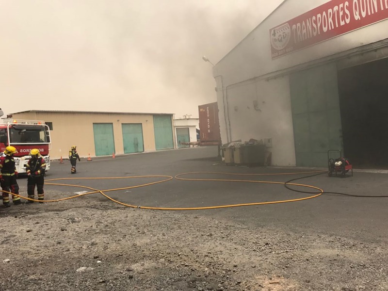 Efectivos del Consorcio de Seguridad y Emergencias del Cabildo de Lanzarote sofocaron en la tarde de este sábado el incendio desatado en el interior de una nave industrial, tras ser alertados por el Centro Coordinador de Emergencias (CECOES) del Gobierno de Canarias 112.