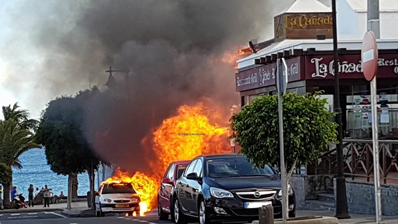 Las llamas, originadas en un restaurante ubicado en la calle César Manrique, afectaron a varios locales, apartamentos y un vehículo