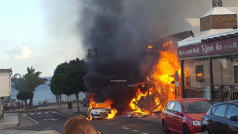 Las llamas se originaron en un restaurante de la calle César Manrique, para luego extenderse a cuatro locales próximos, afectando incluso a algunas viviendas cercanas. El establecimiento afectado, y los otros pequeños locales ubicados junto a él, se situaban entre el Restaurante La Cañada y una joyería.