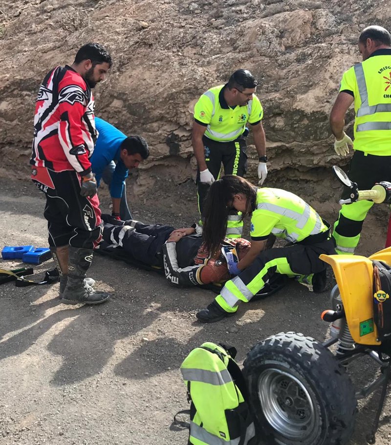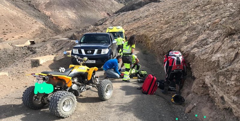 Un joven motorista de 28 años sufrió este domingo una aparatosa caída tras perder el control del quad que conducía cuando transitaba por la carretera de las Laderas de Famara, en el municipio de Teguise.