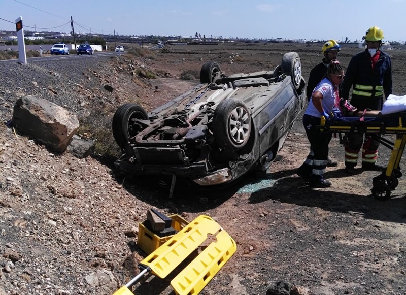 Según informan desde el Consorcio de Seguridad y Emergencias del Cabildo de Lanzarote, la tarea de los bomberos se basó "en colaborar en la evacuación de la accidentada hasta la ambulancia y en la balización del vehículo, el cual se encontraba fuera de la vía, en un desnivel de dos metros aproximadamente".