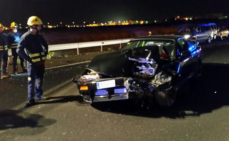 El accidente se produjo sobre las 22 horas, cuando dos coches chocaron y uno acabo volcando en la vía. Hasta allí se desplazaron bomberos del Consorcio de Seguridad y Emergencias, comprobando a su llegada que no había atrapados en el interior de los vehículos. El SUC asistió a los ocupantes, trasladado a uno de ellos, con heridas leves, al Hospital Molina Orosa.