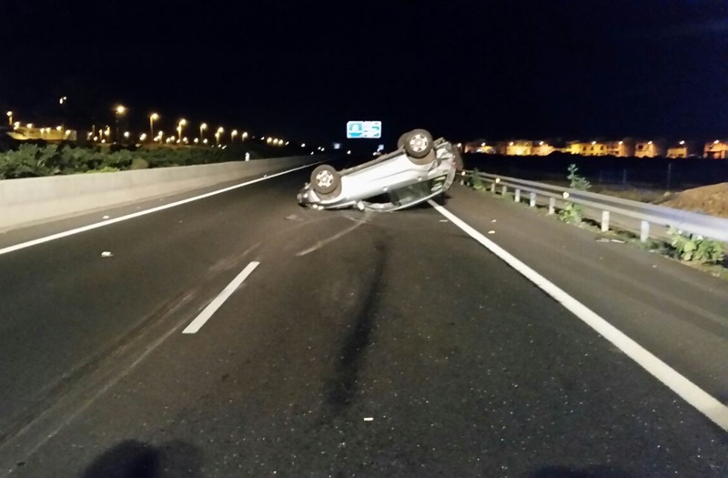 Una persona resultó herida de carácter leve en un choque con vuelco ocurrido en la noche de este lunes en la Circunvalación de Arrecife.