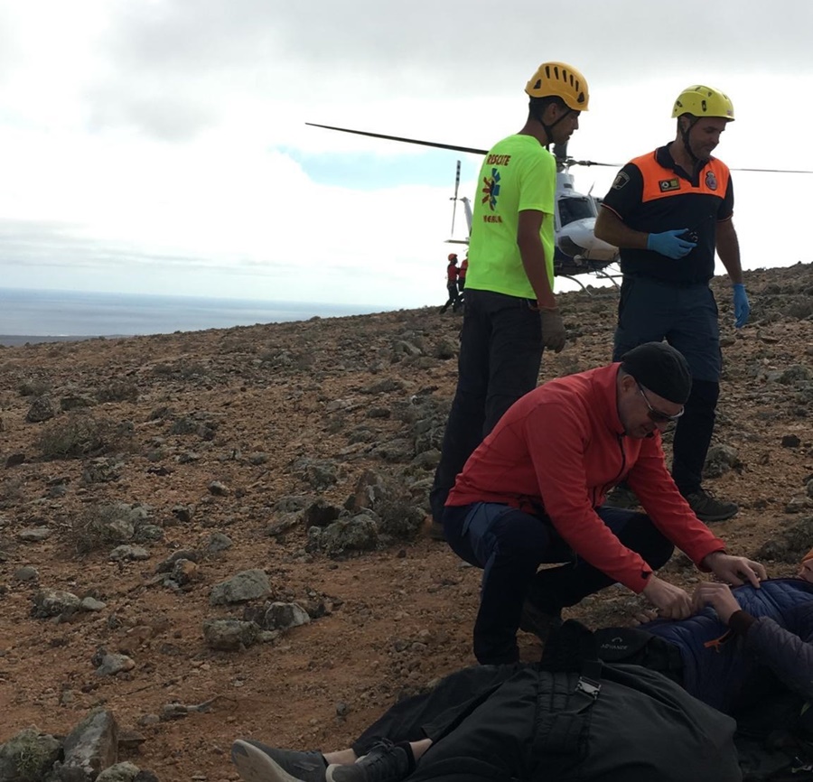 El afectado fue atendido de urgencia por los voluntarios de Emerlan, que colaboraron con Protección Civil y la Policía Local en la localización y traslado del herido al helicóptero del GES del Gobierno de Canarias, que lo evacuó a la helisuperficie de la central de los Bomberos en Arrecife, desde donde fue trasladado en ambulancia medicalizada del SUC al Hospital Doctor José Molina Orosa de la capital.