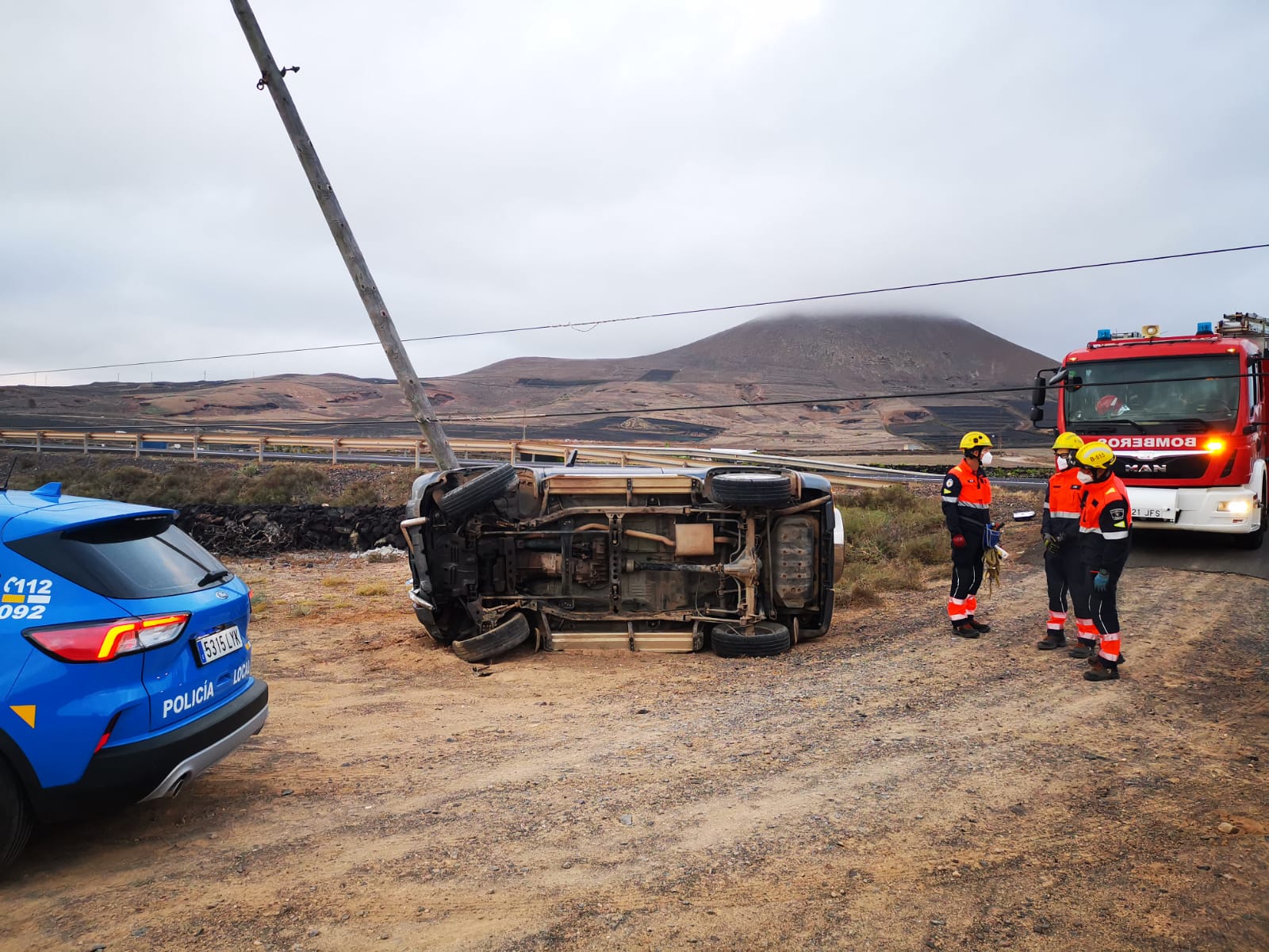 Los Bomberos fueron alertados por el Consorcio de Seguridad y Emergencias de que, en la zona señalada, un coche había sufrido un accidente y se había salido de la vía. Al llegar al lugar, ya se encontraban allí agentes de la Policía Local de Tinajo y de la Guardia Civil que advirtieron de que el conductor había abandonado el vehículo.